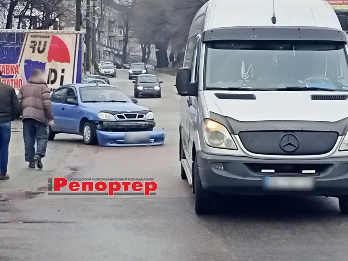 У новенького буса пошкоджено двері, господареві легковика доведеться ремонтувати бампер.