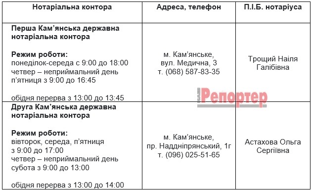 Де у Кам’янському знаходяться державні нотаріальні контори (адреси і телефони, січень 2026 р.)