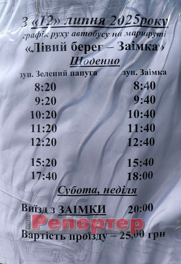 Відповідаємо на запитання читачів щодо графіка руху автобусів за маршрутом “Кам’янське (Лівий берег) – Заїмка”.