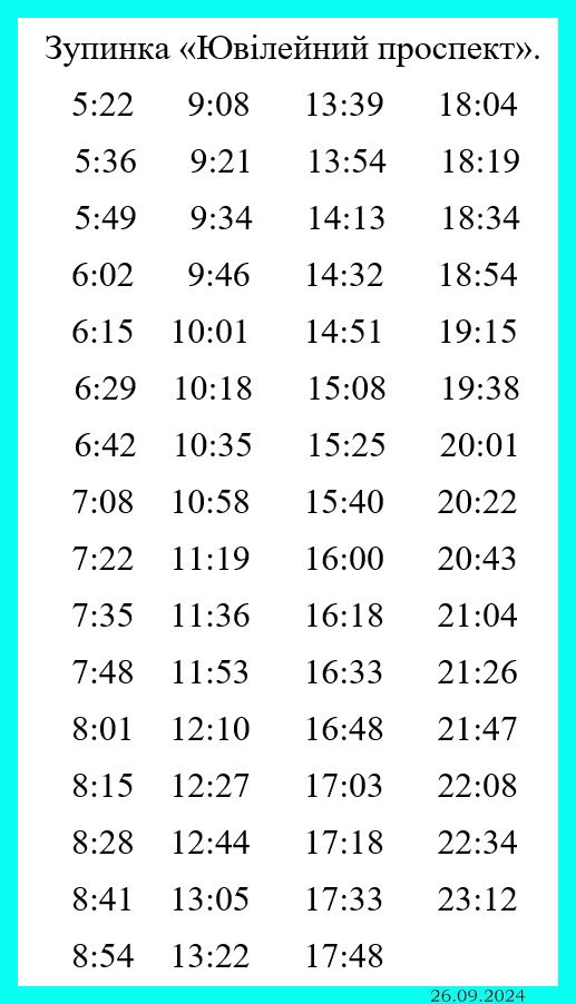 Підготовлено КП “Транспорт”. Розклад руху діє з третього лютого в робочі дні.