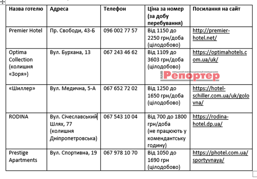 Для зручності гостей міста ми зробили огляд актуальних пропозицій від готелів у Кам’янському. В таблиці зібрано ключову довідкову інформацію, зокрема адреси, контакти та ціновий діапазон за добу: