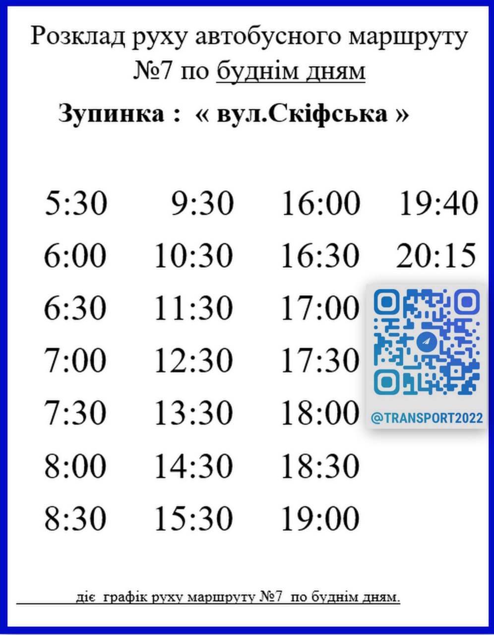 Інформацію надано КП “Транспорт”. З 19 лютого діє новий розклад для автобусного маршруту № 7 (з понеділка по п’ятницю).
