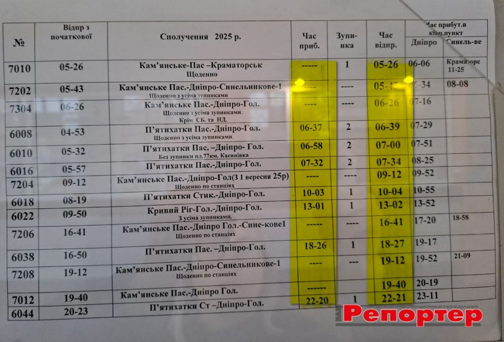 Також читайте: Розклад автобусів «Кам’янське – Дніпро» (зал. вокзал, “Мир”, ДМК). Інформація станом на 06.11.2025