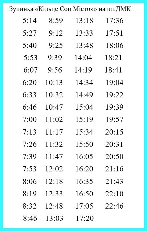 Підготовлено КП “Транспорт”. Розклад руху діє в будні.