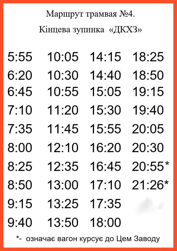 Пасажирам Кам’янського: актуальний розклад руху трамваїв по маршруту № 4
