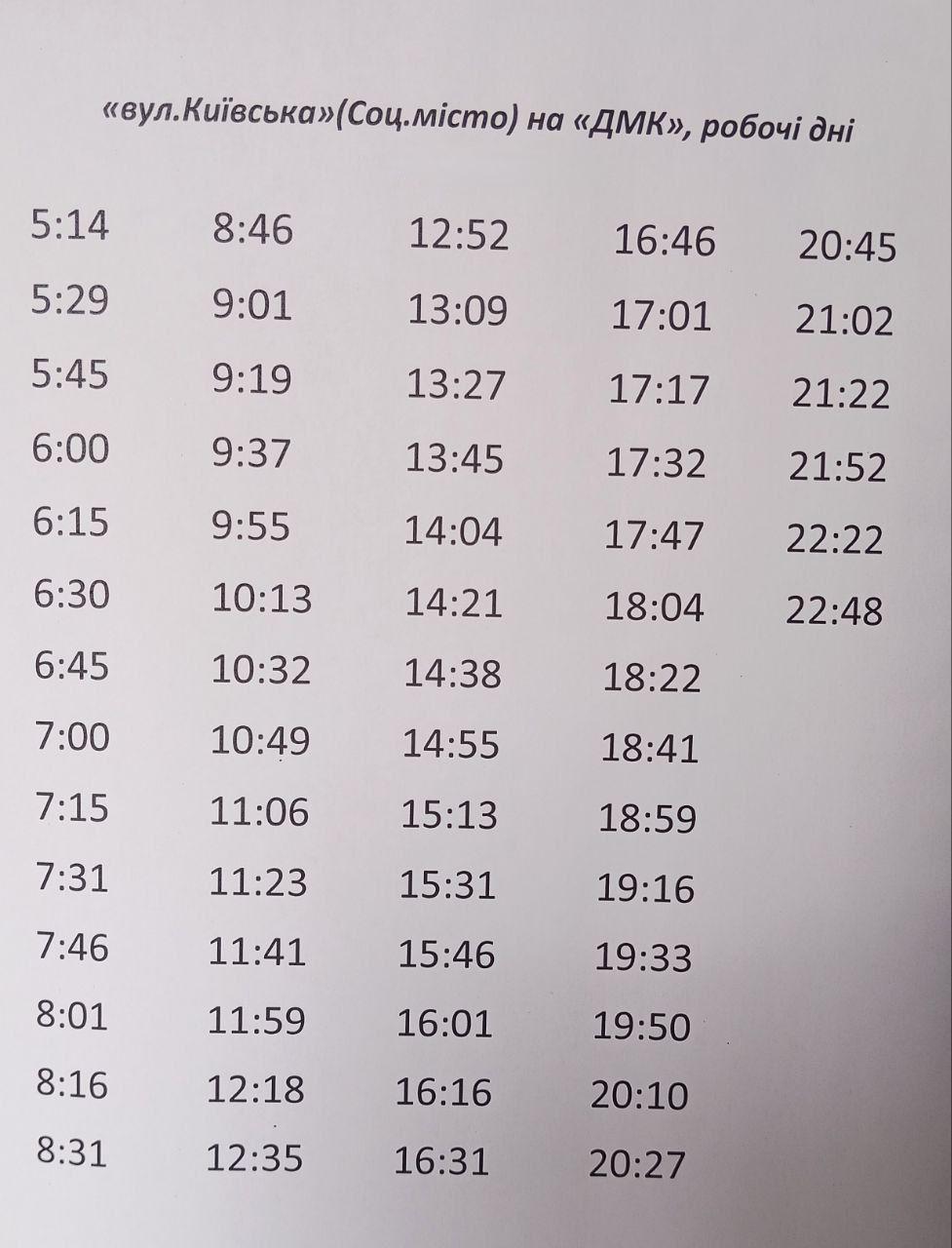 Підготовлено КП “Транспорт”. Розклад руху діє з 26 серпня в робочі дні.