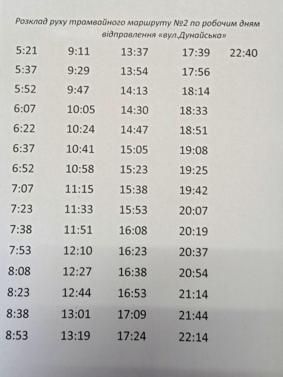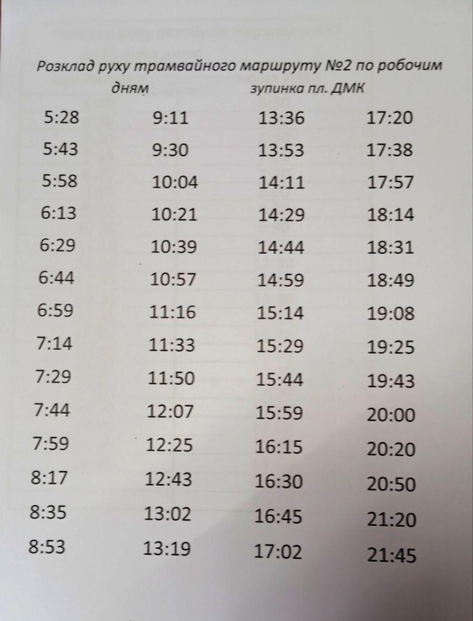 Пасажирам Кам’янського: чинний розклад руху трамваїв маршруту № 2