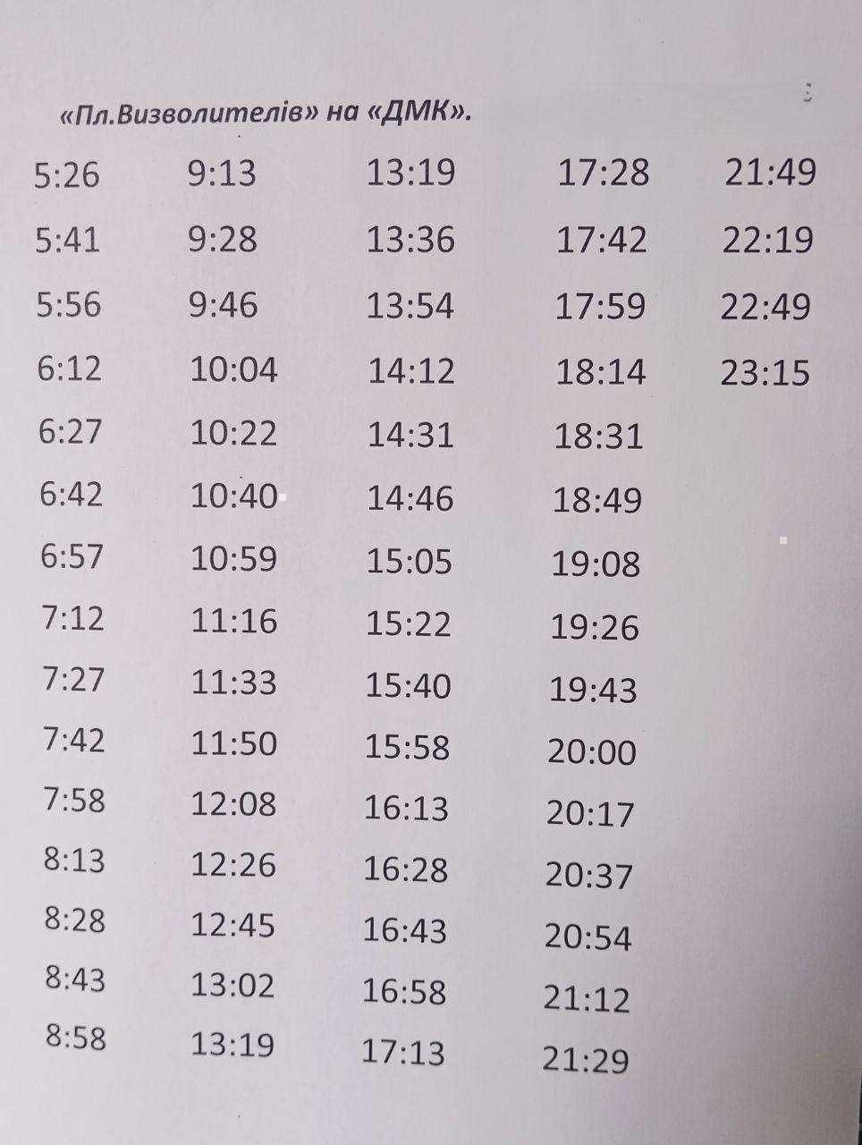 Підготовлено КП “Транспорт”. Розклад руху діє з 26 серпня в робочі дні.