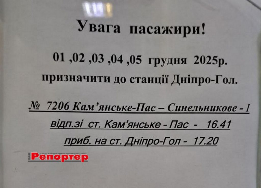 Також читайте: Розклад автобусів з вокзалу (АС-1) Кам’янського (станом на 29.11.2025)