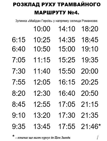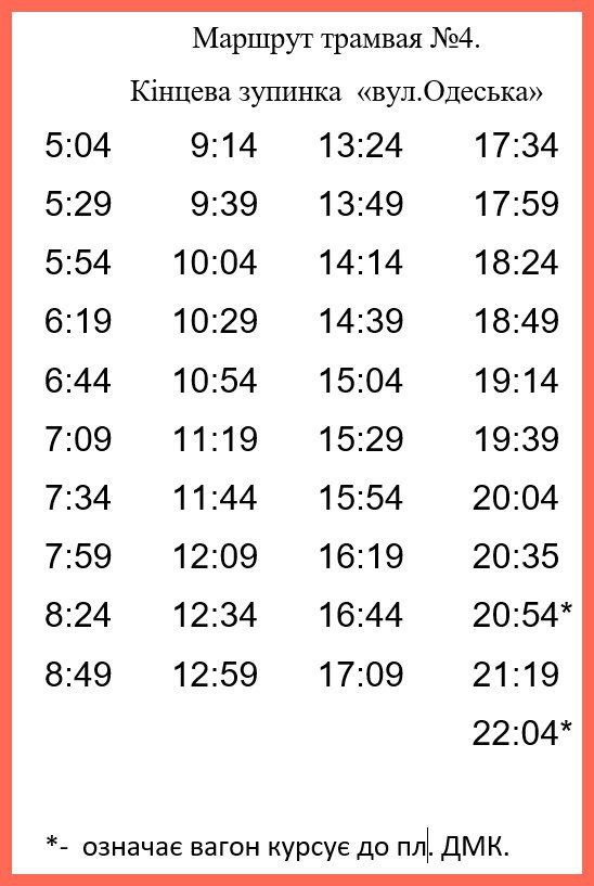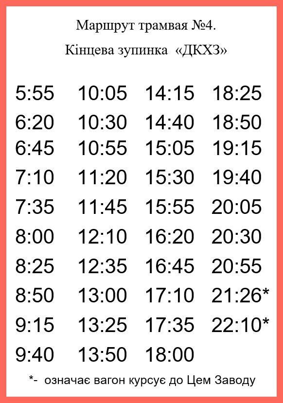 Пасажирам Кам’янського: розклад руху трамваїв по маршруту № 4