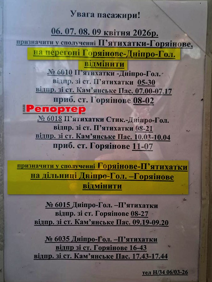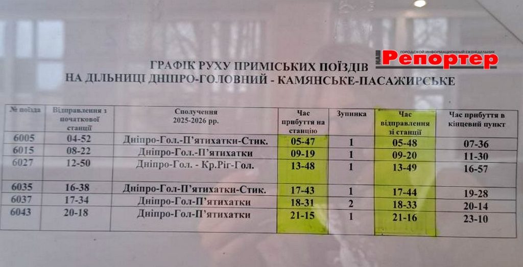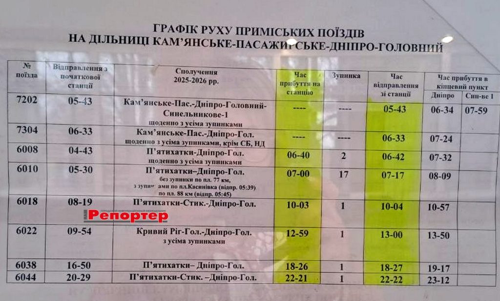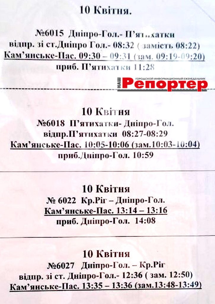 Пасажирам Кам’янського: зміни в розкладі електричок (інформація станом на 02.04.2026)
