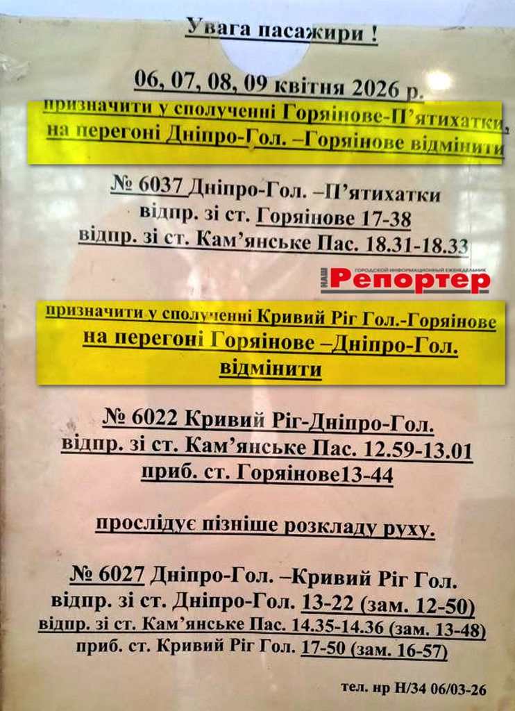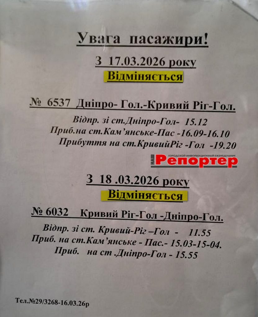 Публікуємо офіційну інформацію, розміщену на залізничному вокзалі Кам’янського. Нагадуємо телефон довідкової: 093-104-70-41.