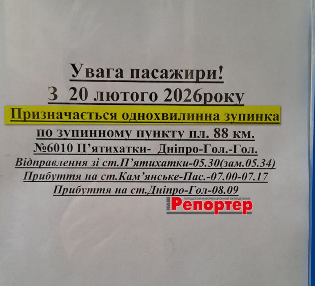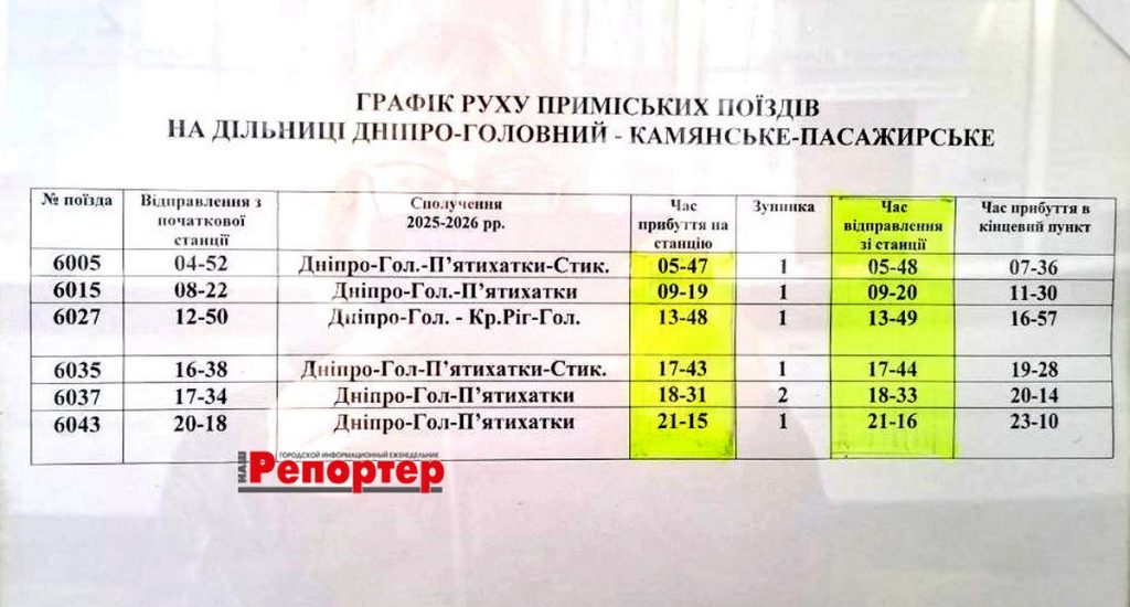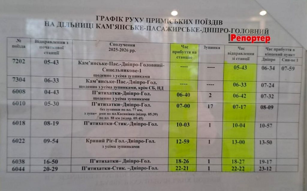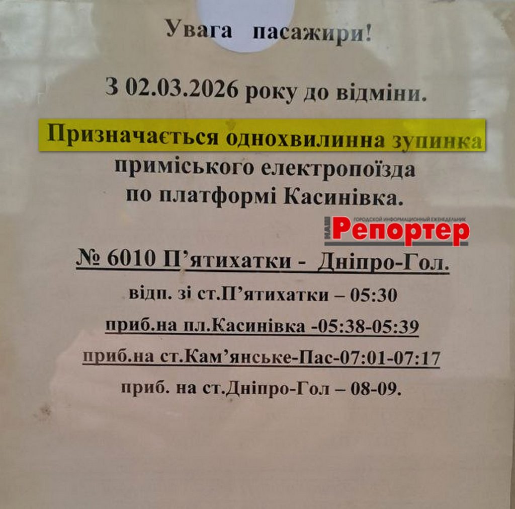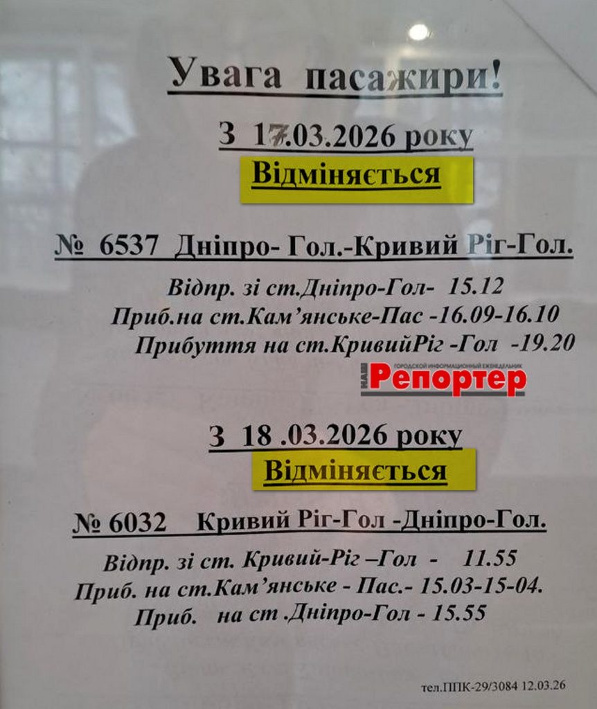 Пасажирам Кам’янського: зміни в розкладі електричок (інформація станом на 18.03.2026)