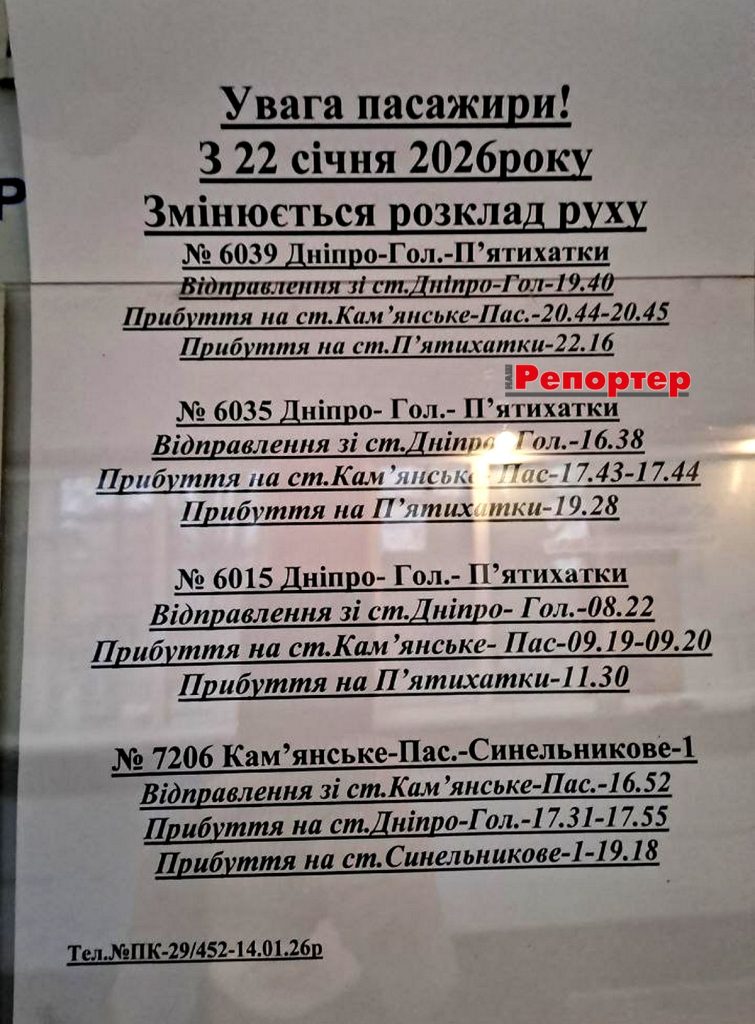 Публікуємо офіційну інформацію, розміщену на залізничному вокзалі Кам’янського. Нагадуємо телефон довідкової: 093-104-70-41.