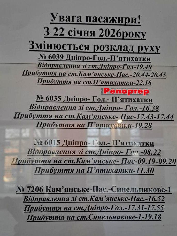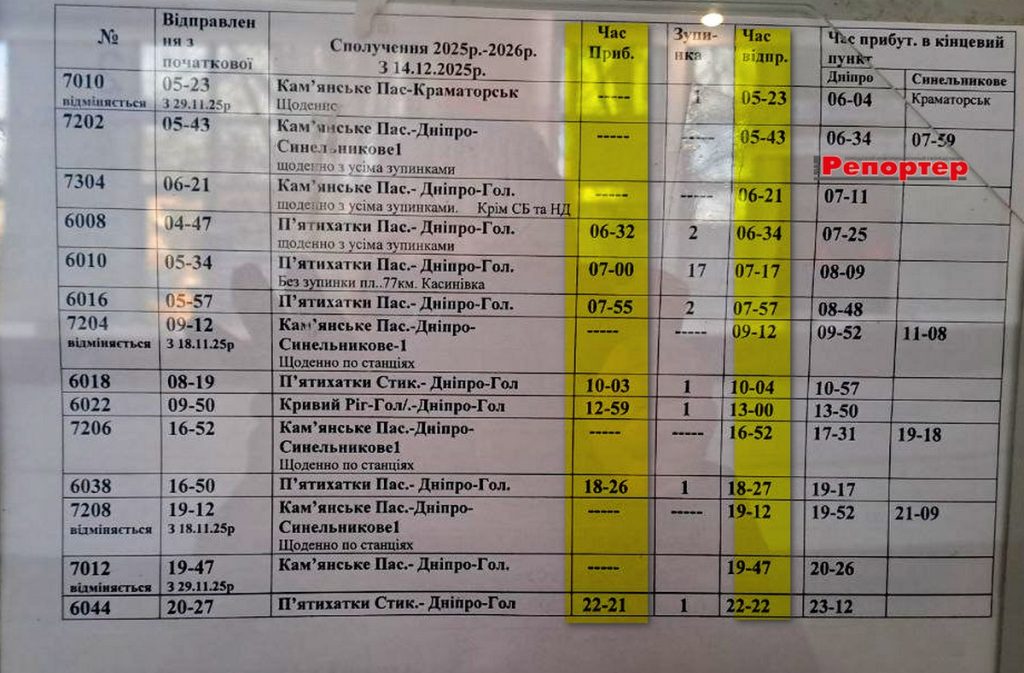 Також читайте: Розклад автобусів з вокзалу (АС-1) Кам’янського (станом на 01.02.2026)