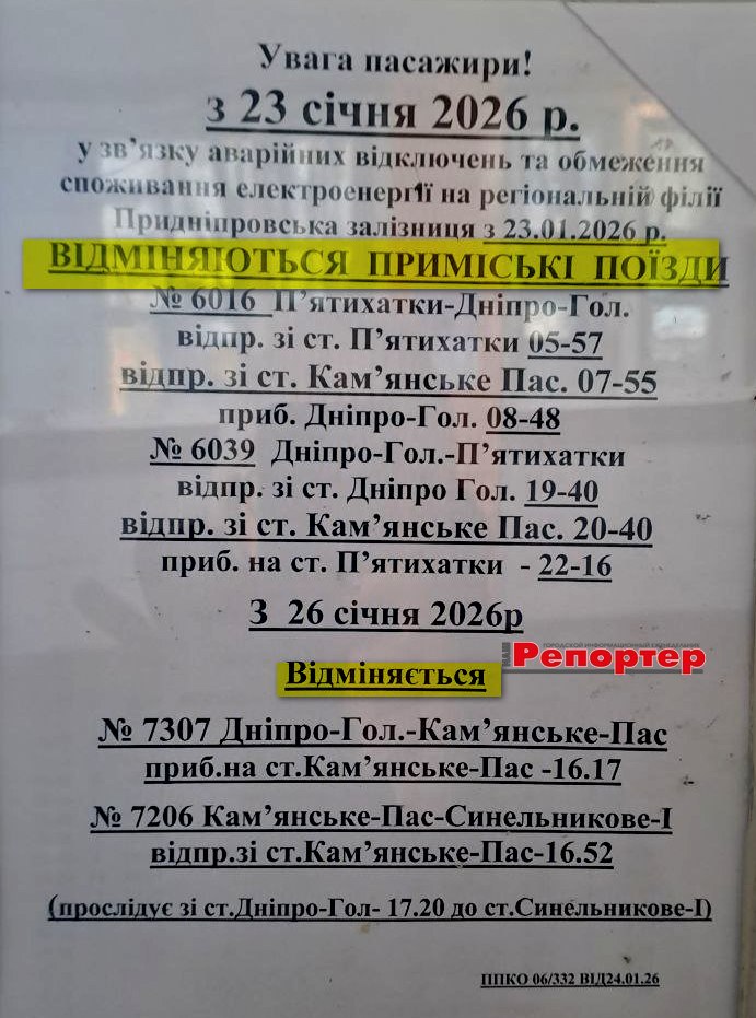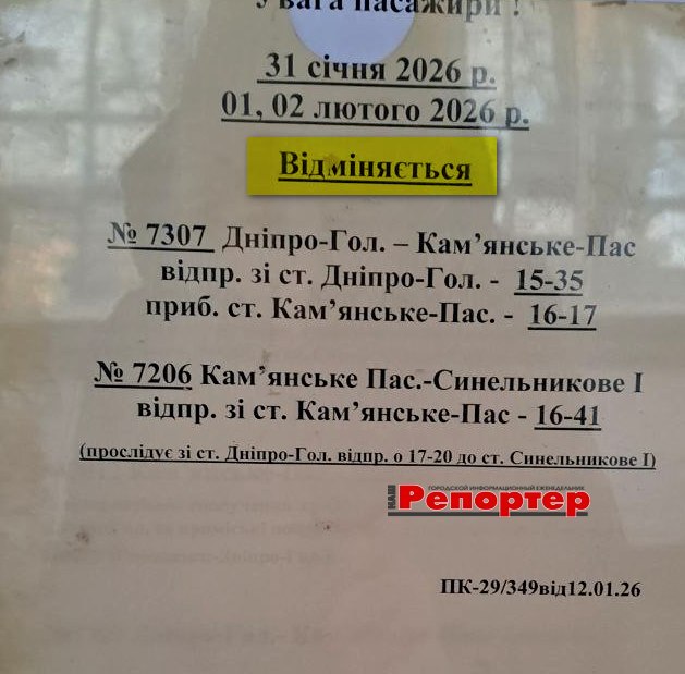 Пасажирам Кам’янського: зміни в розкладі електричок на новий тиждень (інформація станом на 01.02.2026)