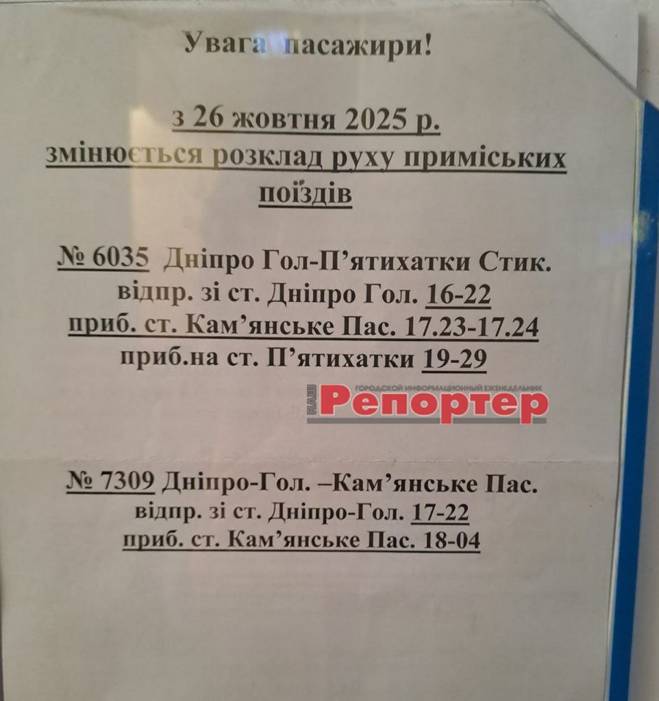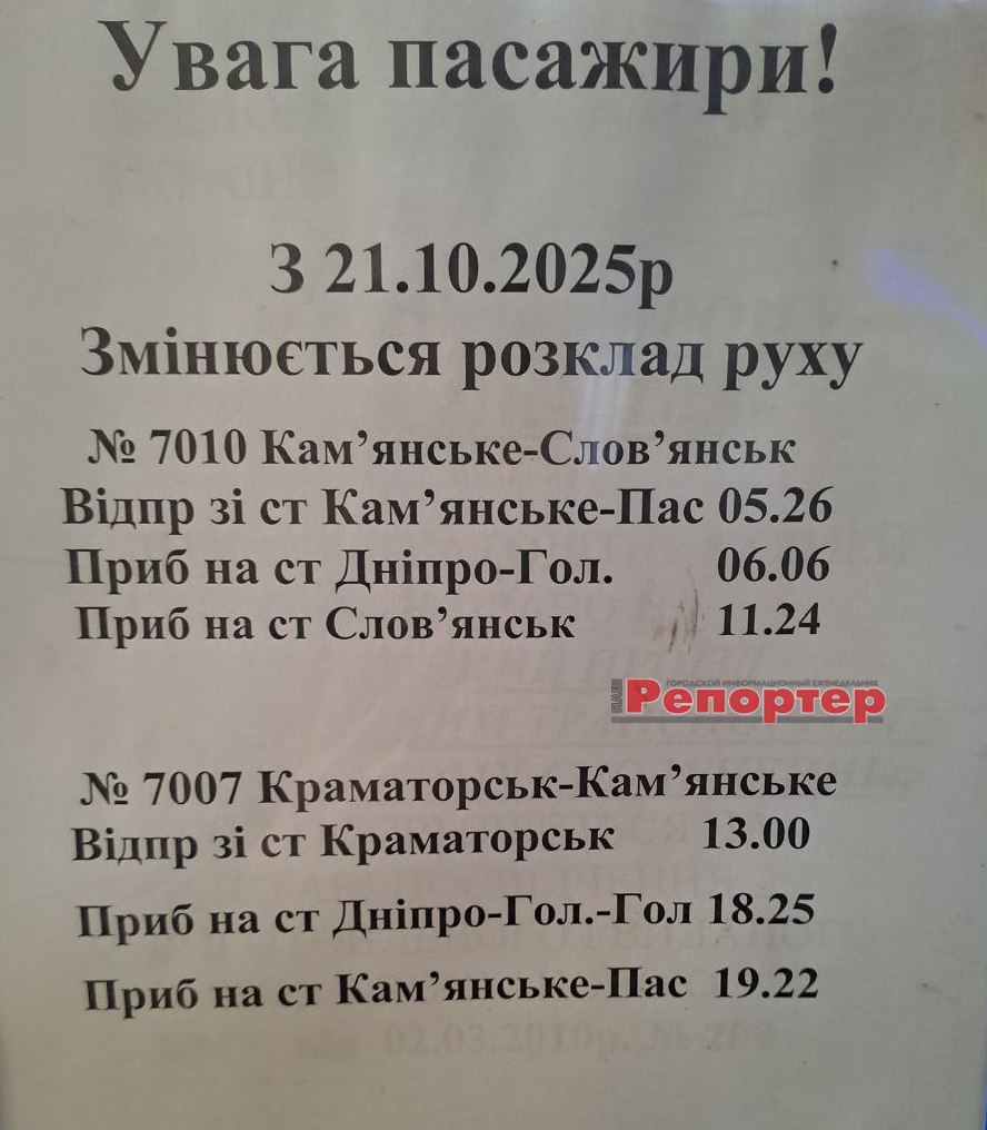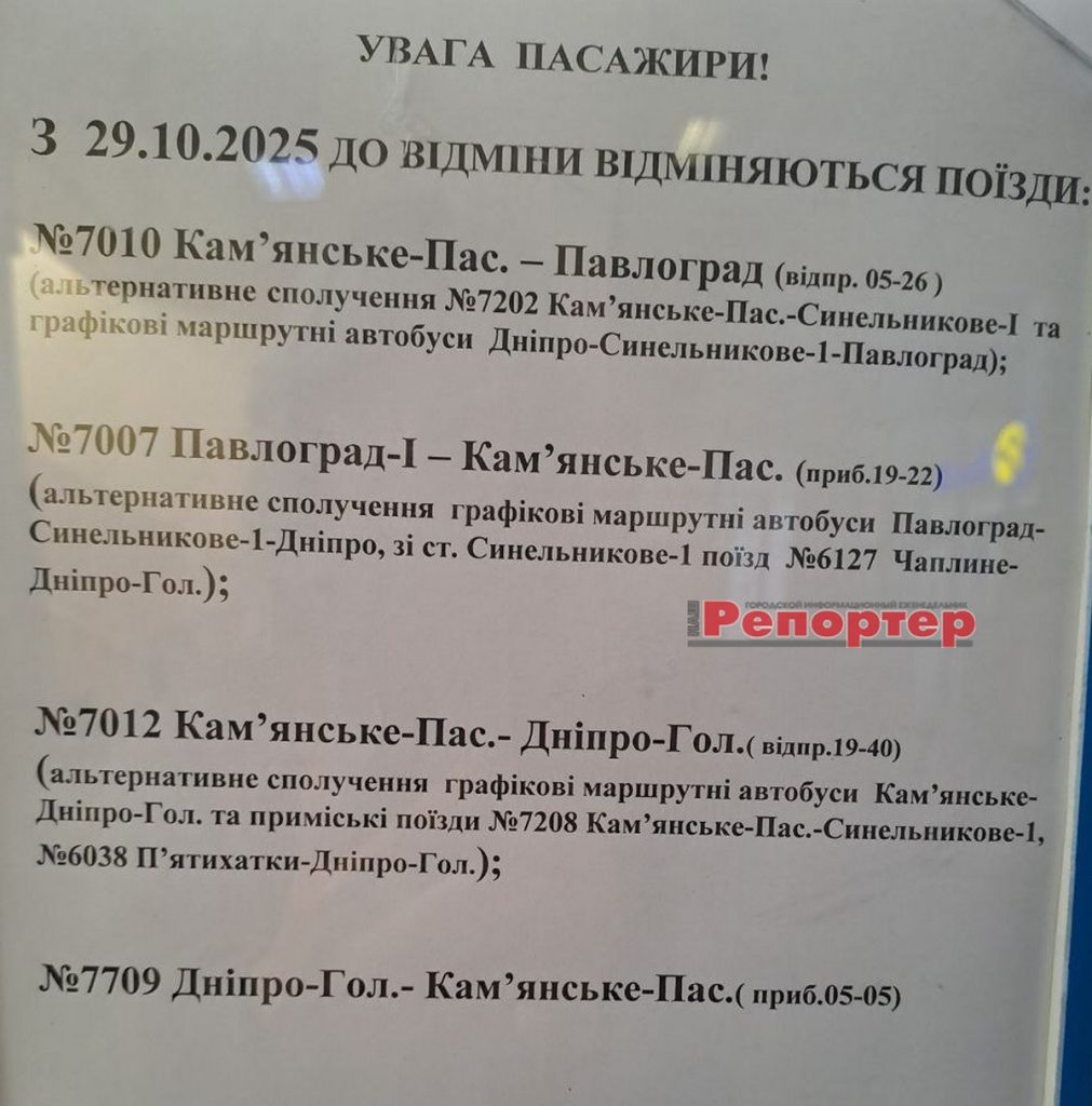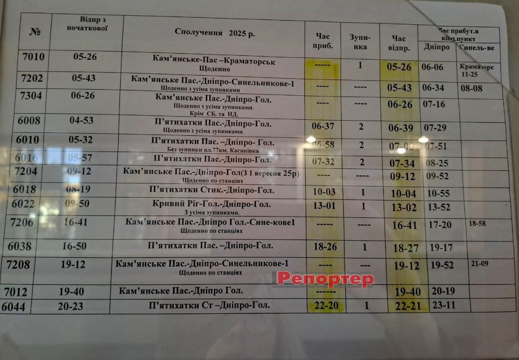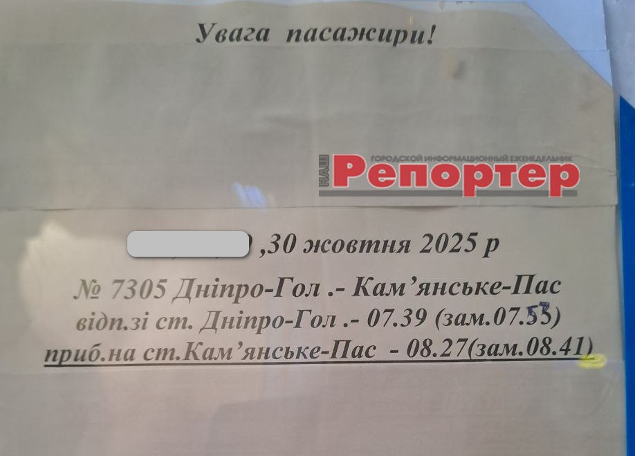 Також читайте: Розклад автобусів з вокзалу (АС-1) Кам’янського (станом на 28.10.2025)