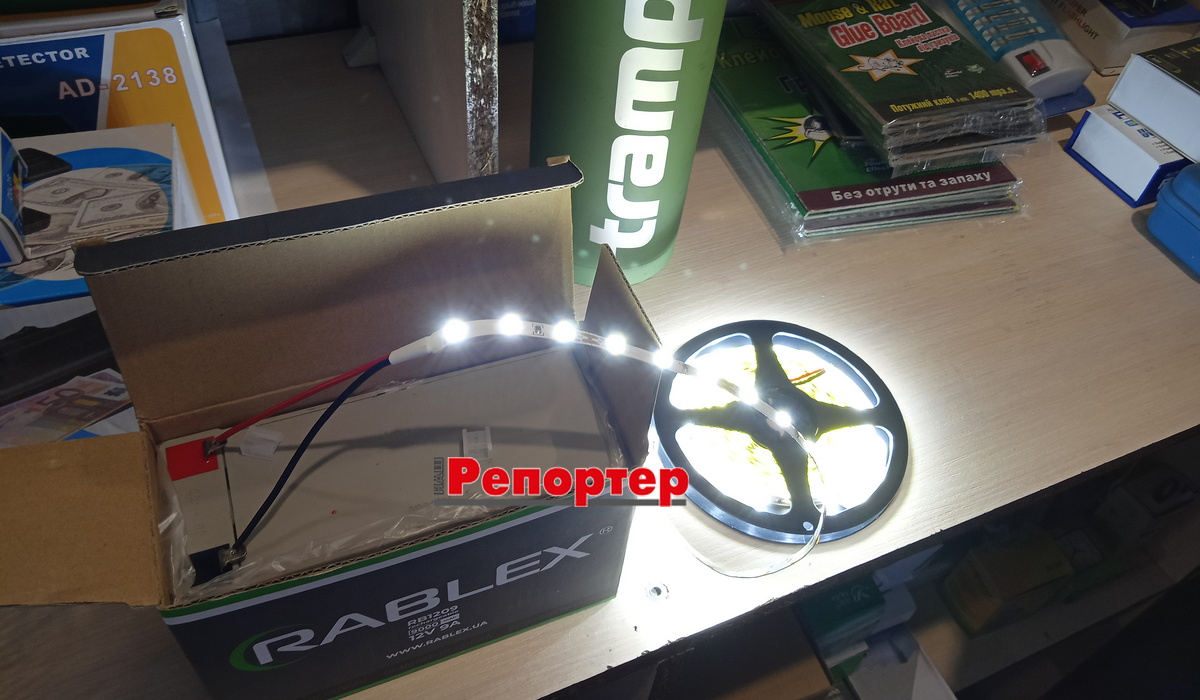 Продавець із намету біля критого ринку поділився власним способом освітлення за відключення електрики. Він показав мені котушку зі світлодіодною стрічкою (5 метрів). Цю стрічку дуже просто підключити до акумулятора. Світитиме 18 годин. І зовсім не гріється. Ця стрічка також має клейку зворотну поверхню, потрібно тільки зняти захисну смужку. У себе вдома чоловік наклеїв таку стрічку на карнизи ще в перший рік війни, коли тільки почалися перебої з електрикою. Сьогодні моток світлодіодної стрічки обійдеться від 200 грн, акумулятор на 12 вольт – від 600 грн.