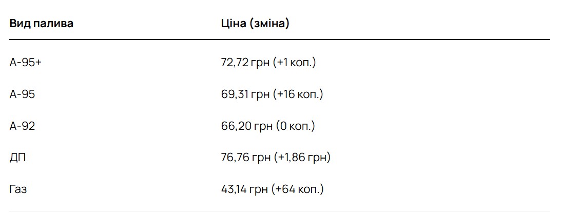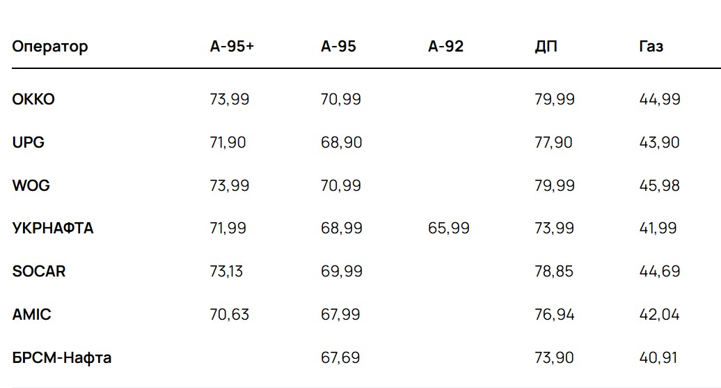 Середні ціни на бензин, дизель та автогаз у провідних операторів на 16 березня виглядають так: