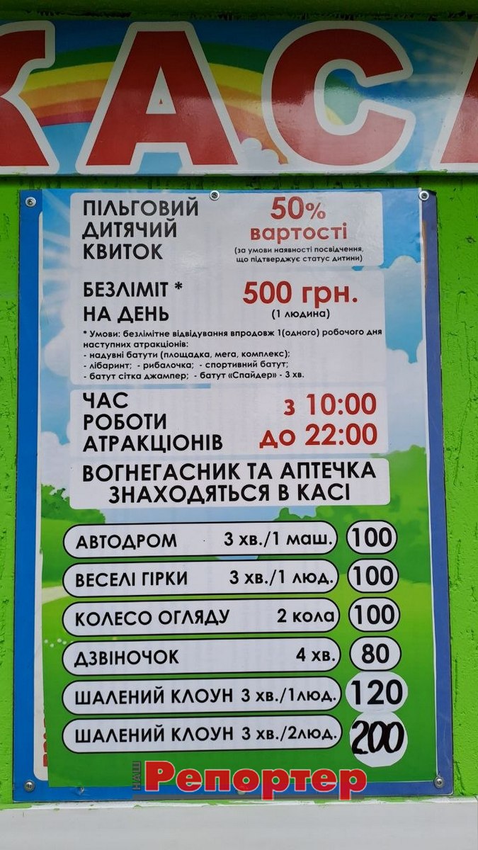 Покататися стане: за 2 кола – 100 грн, за 5 кіл – 200 грн.