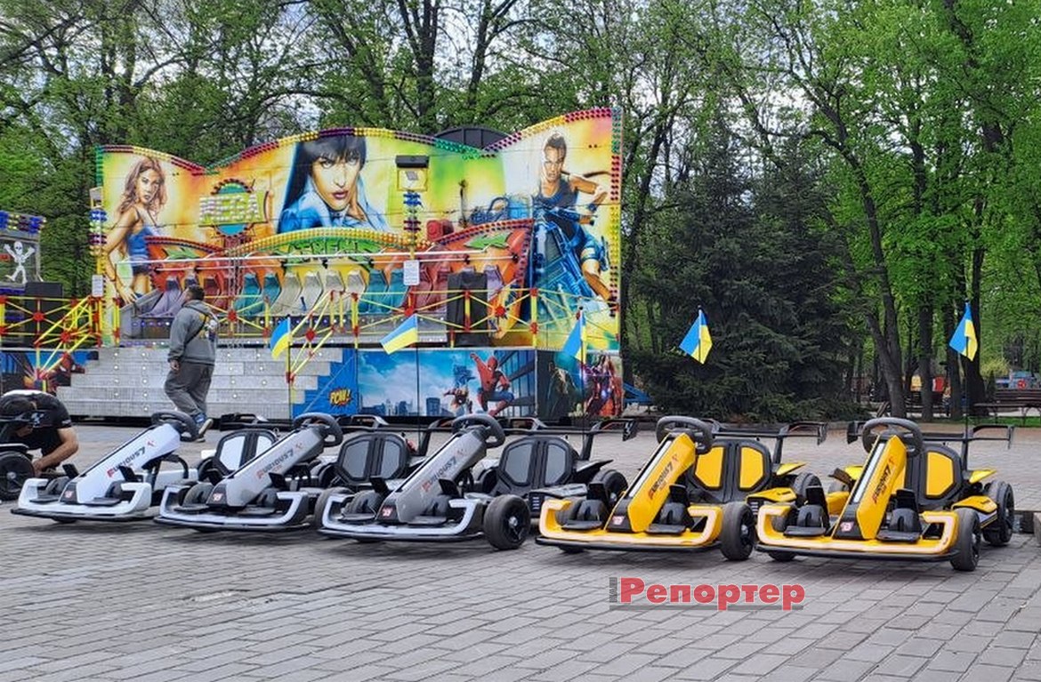 Із настанням теплих днів у парку відновили роботу вже звичні атракціони. І до них додався новий. Біля адміністративного корпусу, на місці ковзанки, вже обладнано трасу для картингу. Атракціон розрахований на молодших школярів.