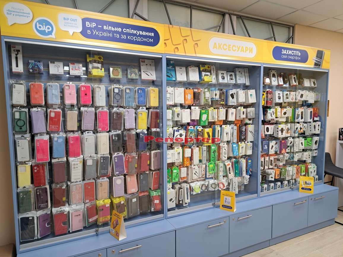 На вітринах можна вибрати ґаджети і аксесуари (смартфони, роутери, смарт-годинники, повербанки, чохли для телефонів, портативна акустика, зарядні пристрої, кабелі, навушники, перехідники та інше).