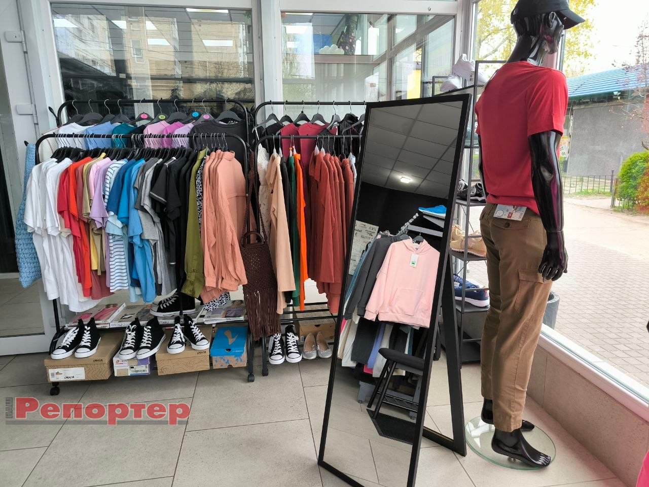 Магазин облаштований з урахуванням комфорту клієнтів: простора примірочна, дзеркала та можливість вільно пройтися у взутті чи одязі, щоб оцінити зручність і посадку. Відвідувачі вже обирають для себе вигідні та цікаві пропозиції.