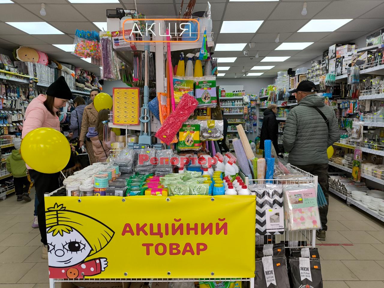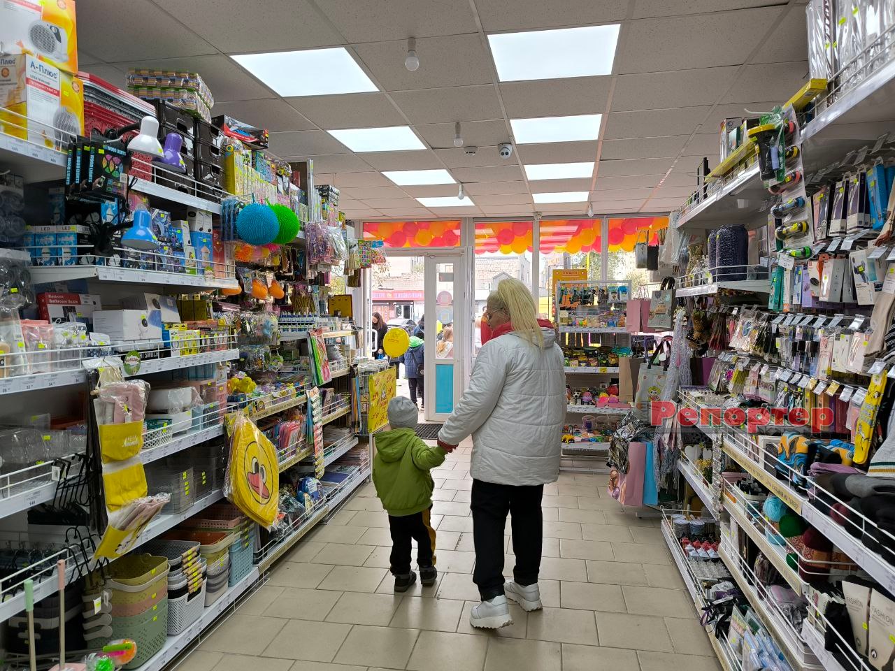 Асортимент товарів у магазині представлений за доступними цінами. У продажу є кухонне начиння, посуд, канцтовари, побутова хімія, дитячі іграшки, господарський інвентар, зоотовари, електроприлади, спідня білизна, аксесуари, засоби для особистої гігієни, стенди з предметами для святкування дня народження, декор, продукти харчування, напої, домашній текстиль та інші дрібниці.