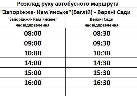 З 1 квітня запускають автобусний маршрут “Запоріжжя-Кам’янське (Баглій) – Верхні Сади”