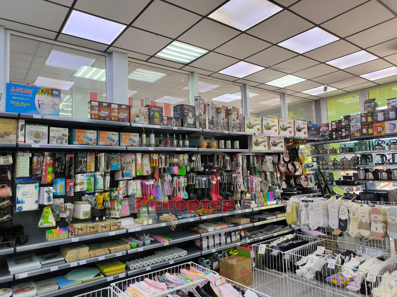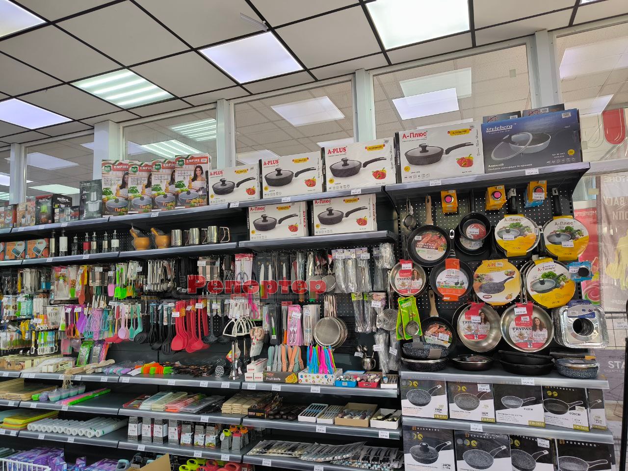 На полицях ви знайдете стандартний для цієї мережі асортимент товарів для дому:
