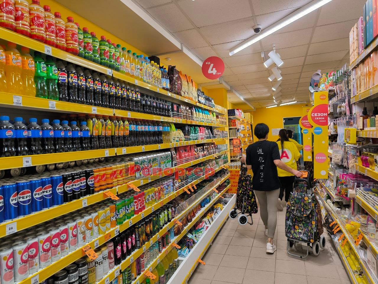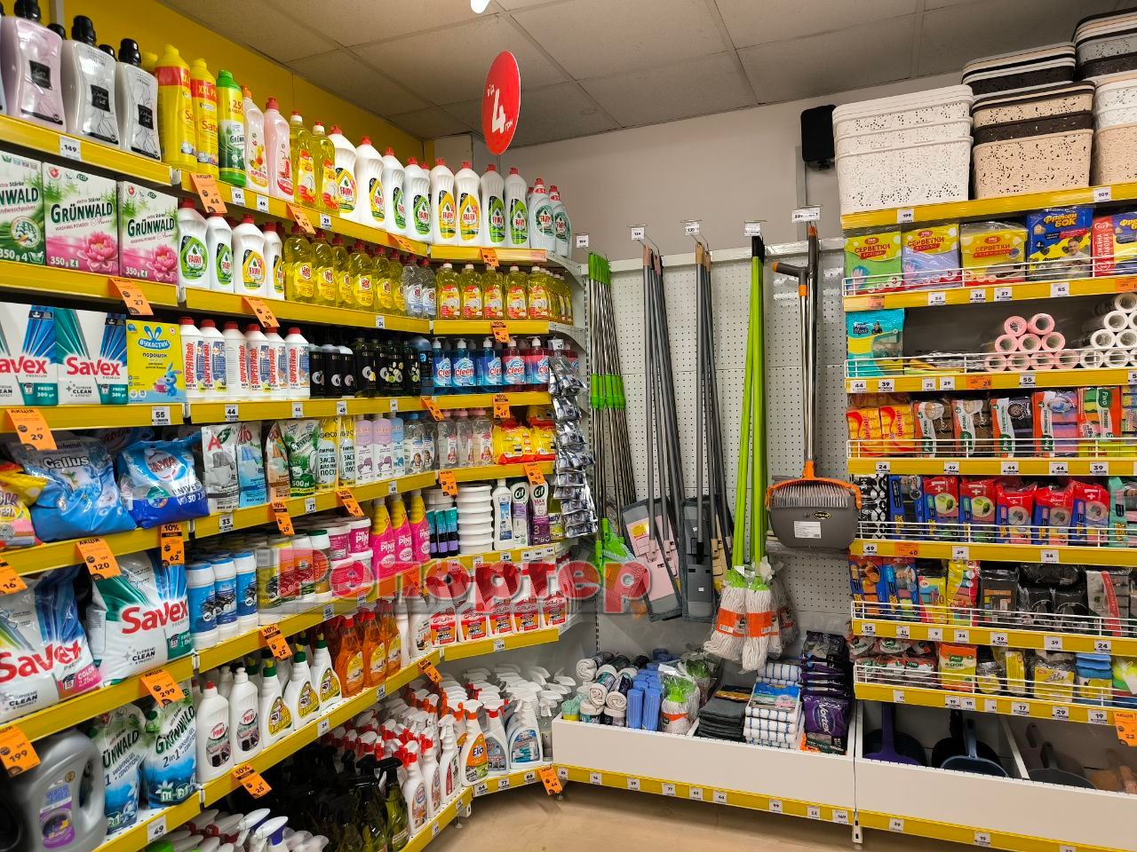 Торгова точка розмістилася у доволі великому та просторому приміщенні, де представлено широкий асортимент товарів. Тут покупці зможуть знайти буквально все необхідне: від господарських товарів, продуктів і напоїв до посуду, електроприладів, постільної білизни, інструментів та побутової хімії.