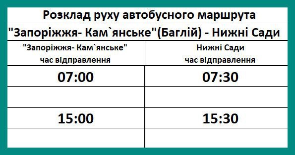 З 12 квітня змінюється розклад автобусного маршруту “станція Запоріжжя-Кам’янське (Баглій) – Верхні/Нижні Сади”