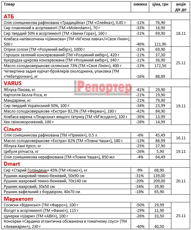 Знижки в супермаркетах Кам’янського: де заощадити (з 14 по 21 листопада)