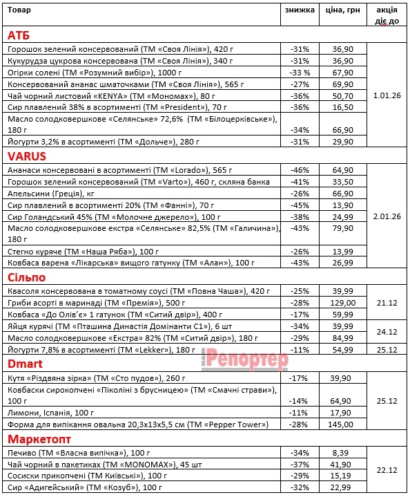 Знижки в супермаркетах Кам’янського: де заощадити (з 18 грудня по 2 січня)