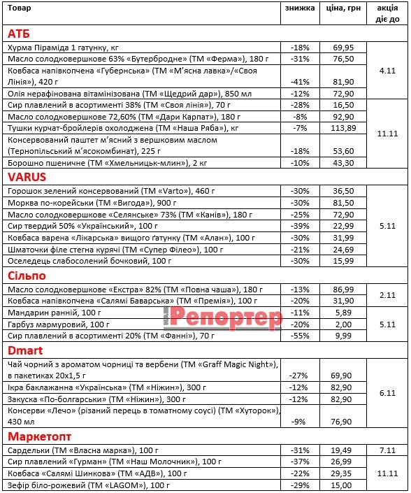 Знижки в супермаркетах Кам’янського: де заощадити (з 31 жовтня по 7 листопада)