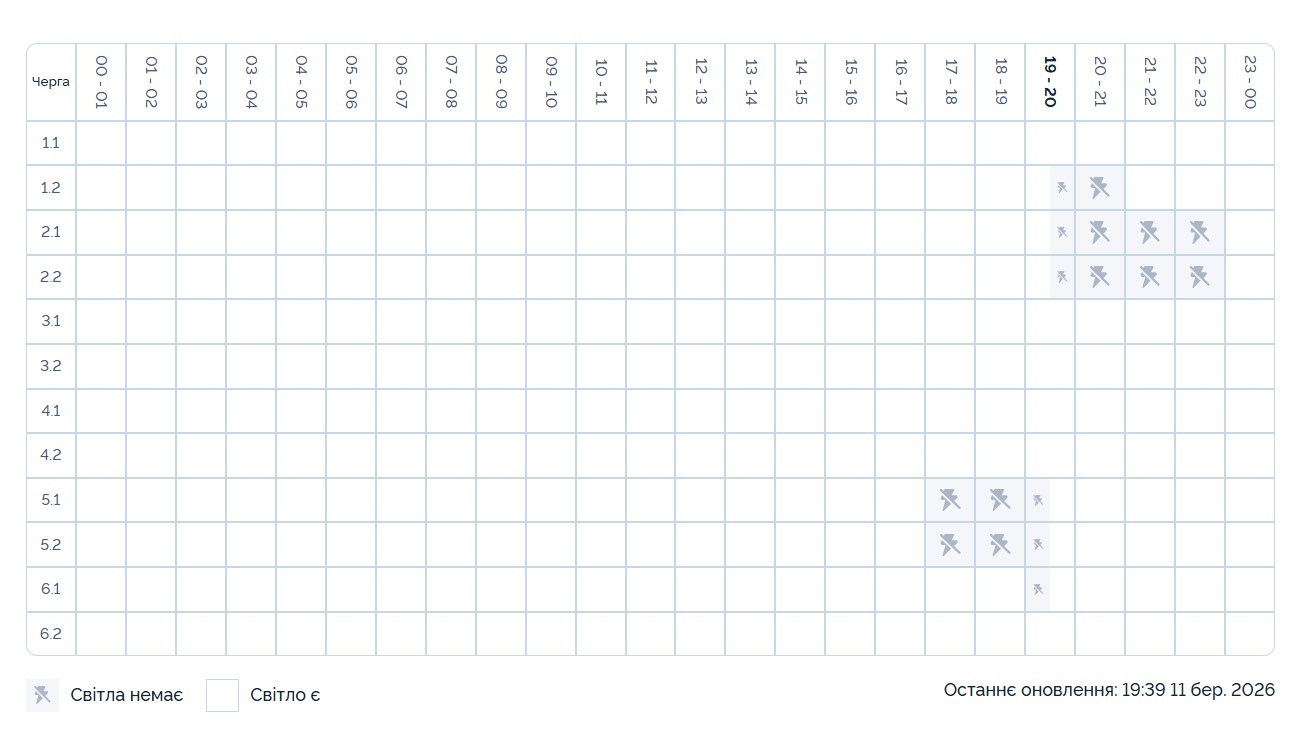 Графіки відключень світла в Кам’янському на 12 березня (оновлюється)