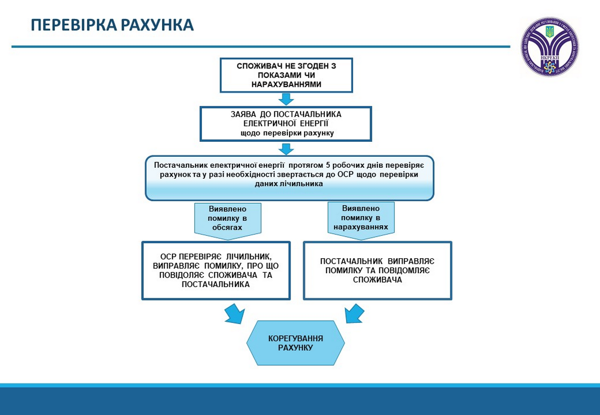 У законодавстві для таких випадків передбачено процедуру перевірки отриманих споживачем рахунків та звіряння даних.