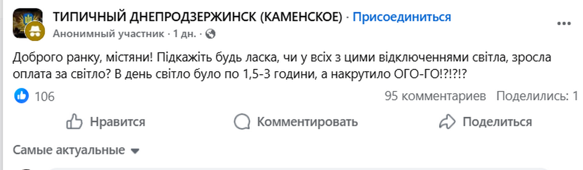 Днями у групі ТИПОВИЙ ДНІПРОДЗЕРЖИНСЬК (КАМ’ЯНСЬКЕ) було активне обговорення цієї ситуації. Наводимо сам пост та деякі коментарі до нього: