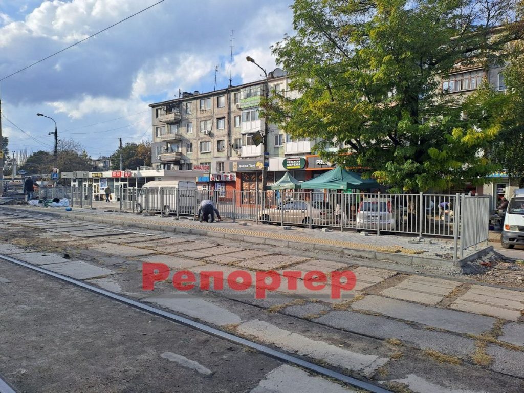 Сьогодні, 2 жовтня, на вулиці Сержанта Коновалова (колишня Глаголєва) тривало будівництво нових трамвайних перонів. Платформи облаштовують тактильною плиткою, спеціальними з’їздами й огорожею.