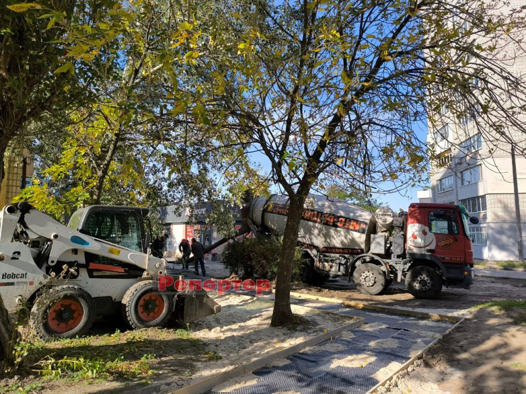 Бригада і техніка працюють на Лівобережжі у Кам’янському. Зокрема, нові бетонні доріжки облаштовують на першому мікрорайоні.