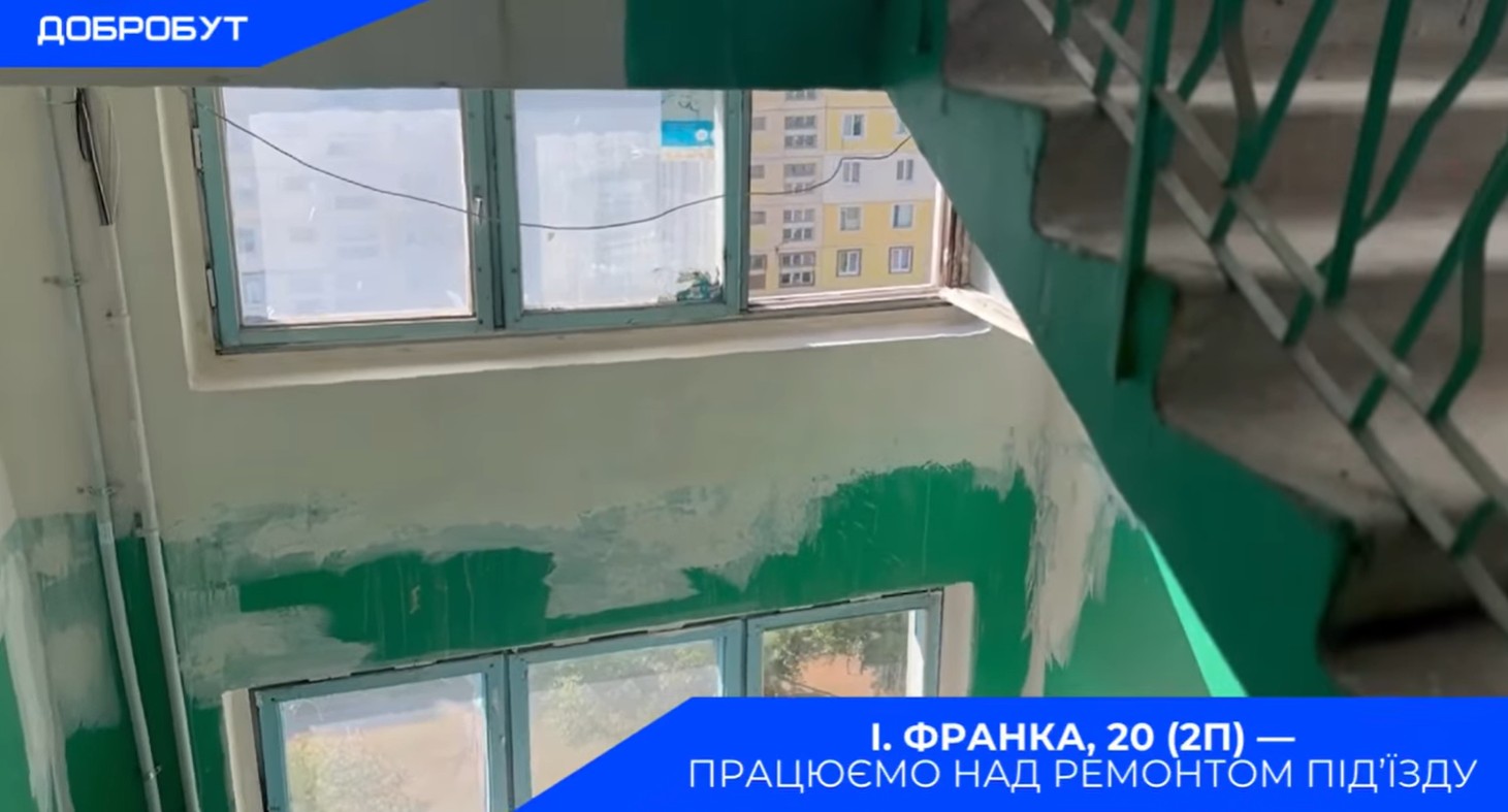 У будинку на пр. І. Франка, 20, триває поточний ремонт другого підʼїзду. Комунальники виконують комплекс робіт: