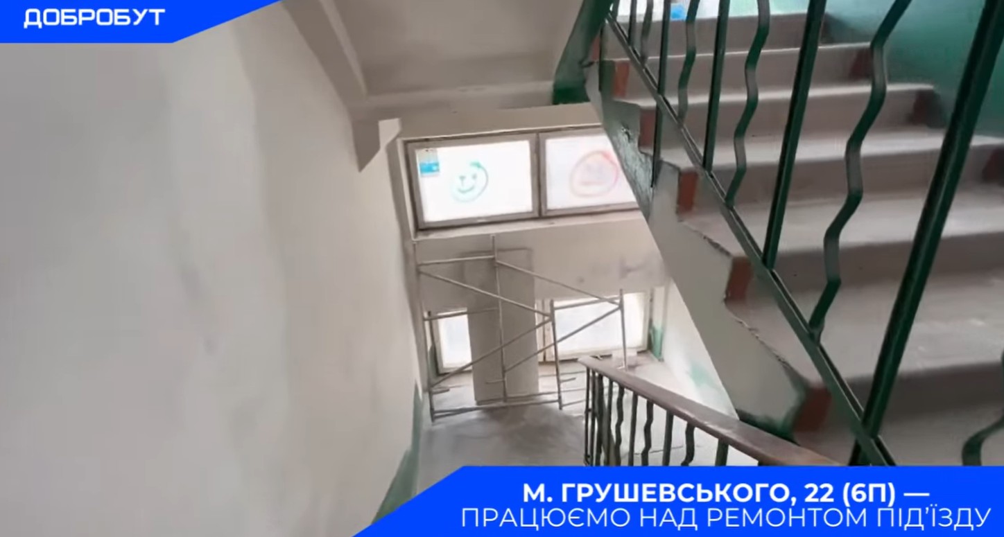 Тривають роботи у шостому під’їзді на вул. М. Грушевського, 22.