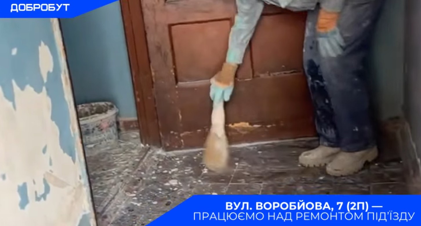 На вул. Воробйова, 7, приводять до ладу другий під’їзд.