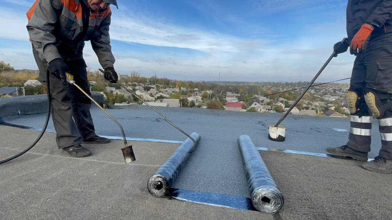 Комунальники лагодять покрівлю на вул. Нікопольській, 32