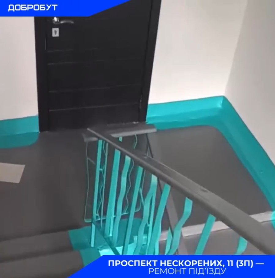 Відремонтовано третій під’їзд на пр. Нескорених, 11. Особливістю цього об’єкта стало активне залучення мешканців, зокрема, реалізовано художнє оформлення вхідної групи (результат – на головному фото).