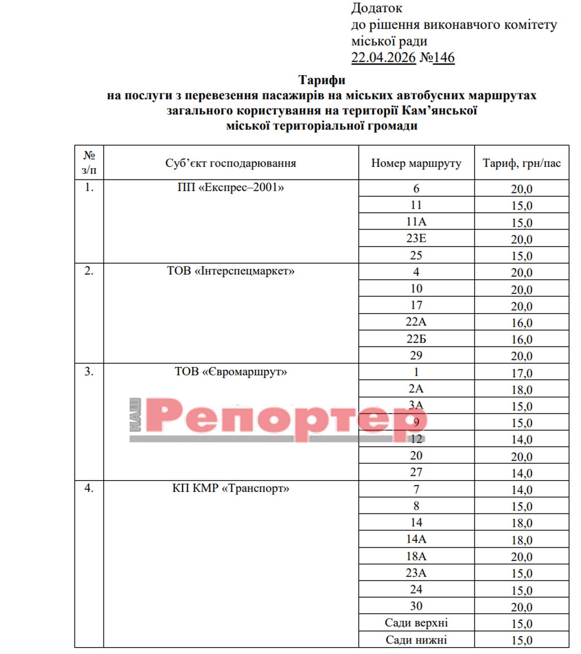 Дане рішення набирає чинності з дня, наступного за днем його оприлюднення на офіційному вебсайті Кам’янської міської ради. Отже нові ціни на проїзд у міських автобусах почнуть діяти з 24 квітня.