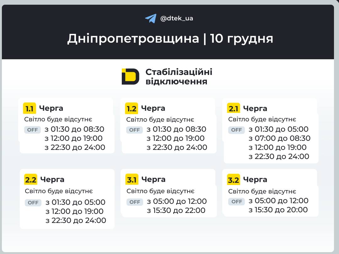 На Дніпропетровщині діють такі графіки: