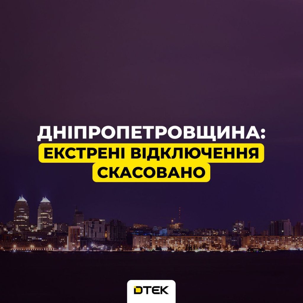💡Дніпропетровщина: екстрені відключення скасовано