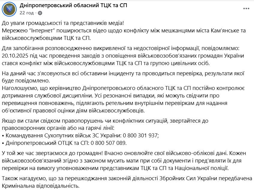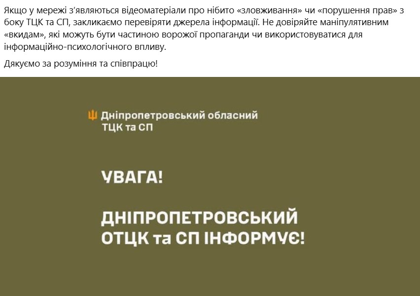 Ситуацію офіційно прокоментували на фейсбук-сторінці Дніпропетровського обласного ТЦК та СП: