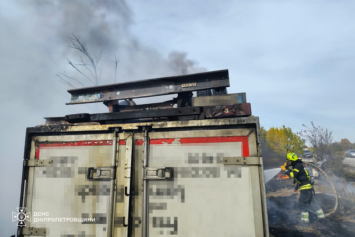 О 12:27 до Служби порятунку надійшло повідомлення про те, що на автошляху Н-08 “Бориспіль – Кременчук – Дніпро – Запоріжжя – Пологи – Маріуполь” поблизу села Червонокам’яне Солонянської селищної територіальної громади горять транспортні засоби.